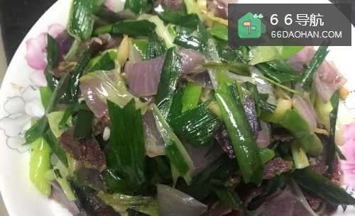 6适当的时候加入蒜苗叶
