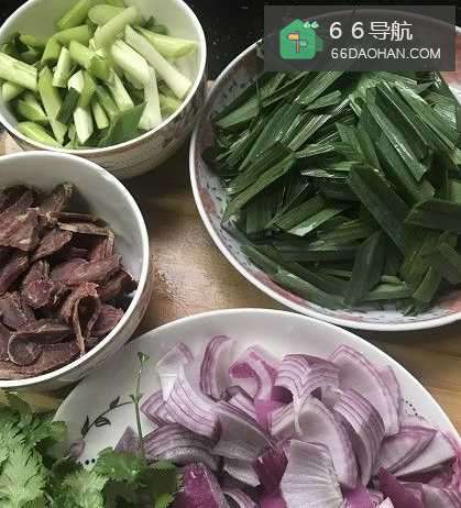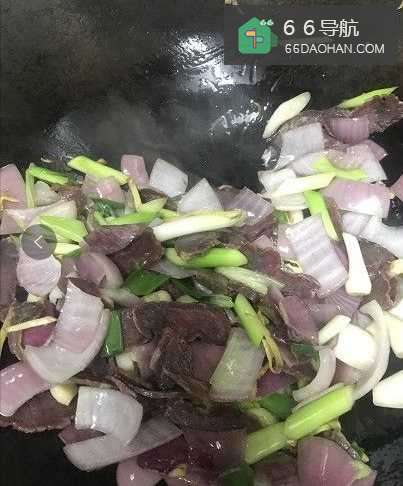 2切好干牛肉、蒜苗、洋葱、