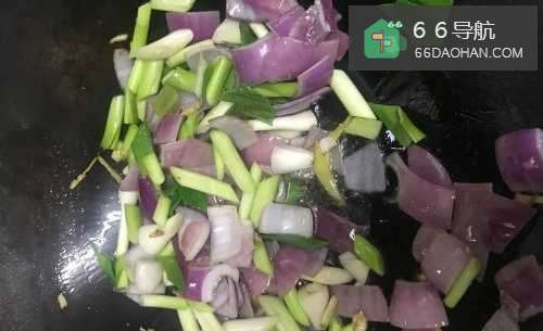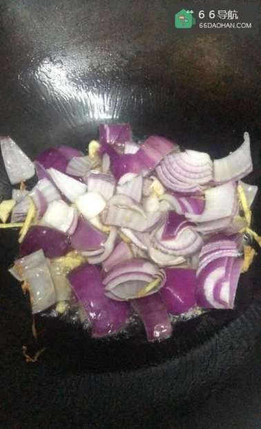 3起锅烧油喜欢吃辣的可以加辣椒哦油到一定温度放姜、蒜炒出香味放洋葱炒成半熟