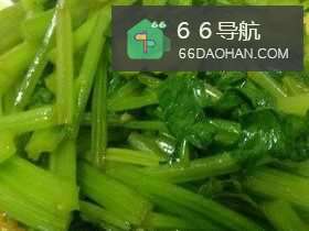 4第四,用锅中的余油将切好的芹菜大火炒,加入适量的盐,记着不要放酱油。