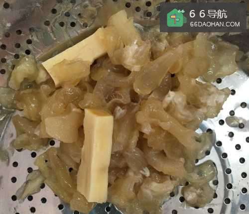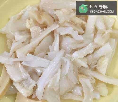 9之后放入牛筋,翻炒均匀,将牛筋炒热。