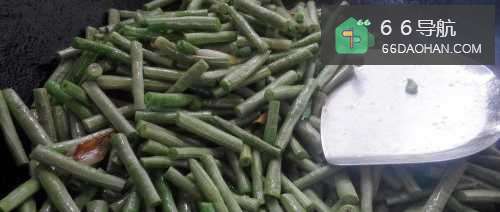 6干净的炒锅中放入油,起烟时,将葱花姜丝放入油中,炸微黄后,将切好的豆角放入锅中,翻炒几下。