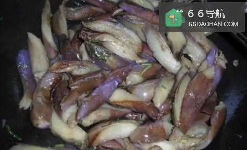 5开盖,茄子翻炒几下后再盖盖烧1分钟