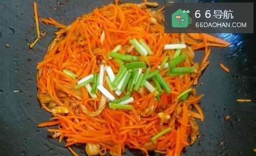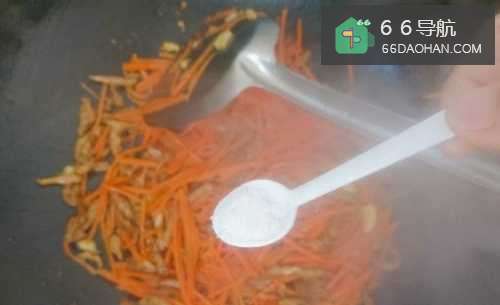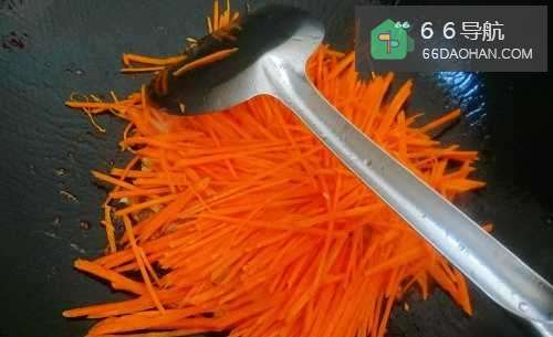 6倒入胡萝卜丝略微翻炒。
