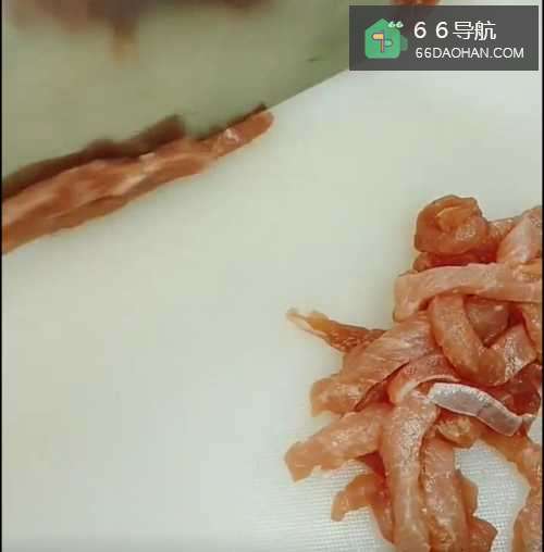 把猪瘦肉清洗干净,切成条状,尽量切的细一点,备用
