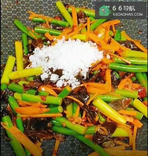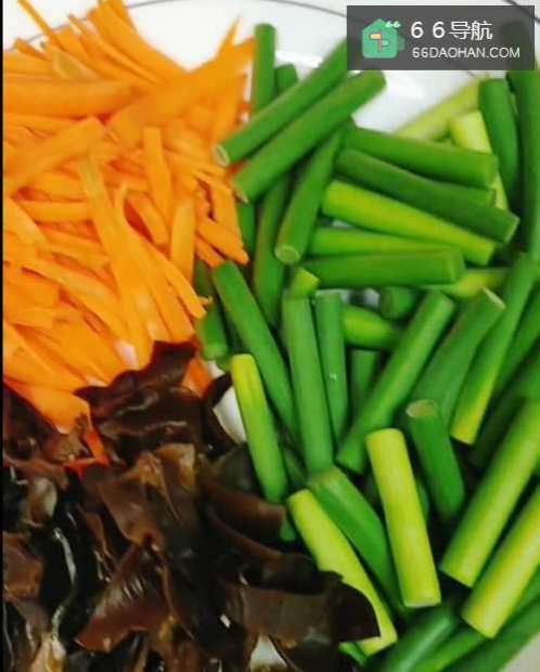 4准备好胡萝卜丝、木耳丝、蒜薹段
