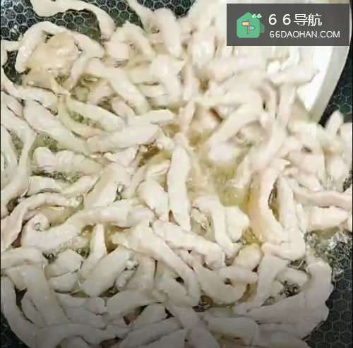 3起锅、热油,将肉丝炒熟,颜色变白即可,盛起备用