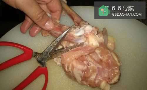将鸡腿肉用剪刀掉下来,清洗干净;