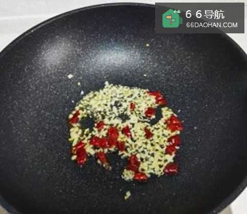 4锅中倒油,油温六成热小火爆香辣椒和生姜。
