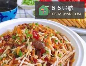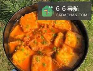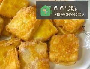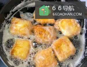 17凉拌豆腐做法和前面一样的步骤,然后豆腐是放入油锅炸至两面金黄,配上凉菜的酱汁即可。