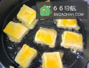 10锅中烧油,小火把豆腐煎至两面金黄。