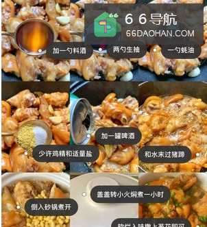 2再加1勺料酒➕2勺生抽➕1勺蚝油➕少许鸡精和适量盐翻炒片刻,放一罐啤酒和水末过猪蹄,大火烧开,倒入砂锅内,到上黄豆,盖上盖子,开小火焖煮一小时直至软烂入味,撒上葱花即可。