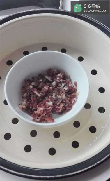 2土质香肠切成小粒,煮饭时一起蒸熟。