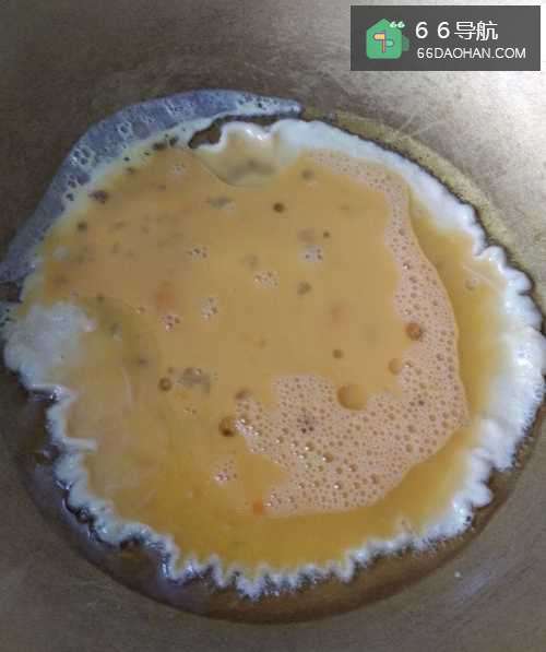 6炒锅里放油烧热,下鸡蛋炒散后盛起。