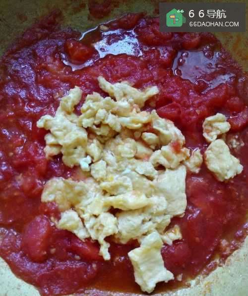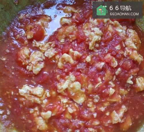 4 下入炒好的鸡蛋,拌匀充分吸入番茄汁即可。