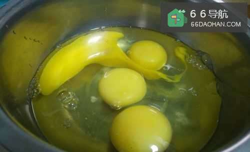 2鸡蛋四个加碘盐,炒熟盛出备用。