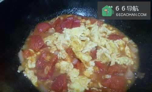 4 加入西红柿翻炒一下,加鸡蛋拌匀。