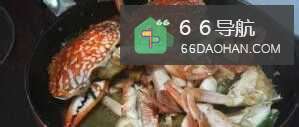 5然后加入花蟹,翻炒片刻。