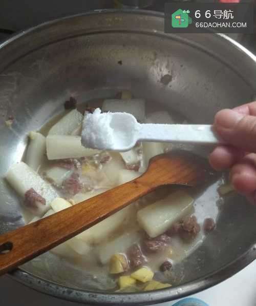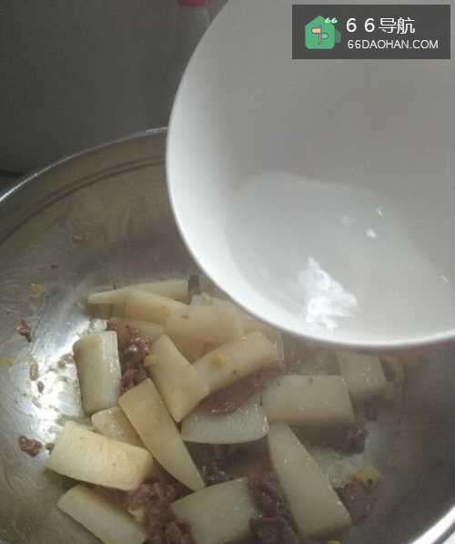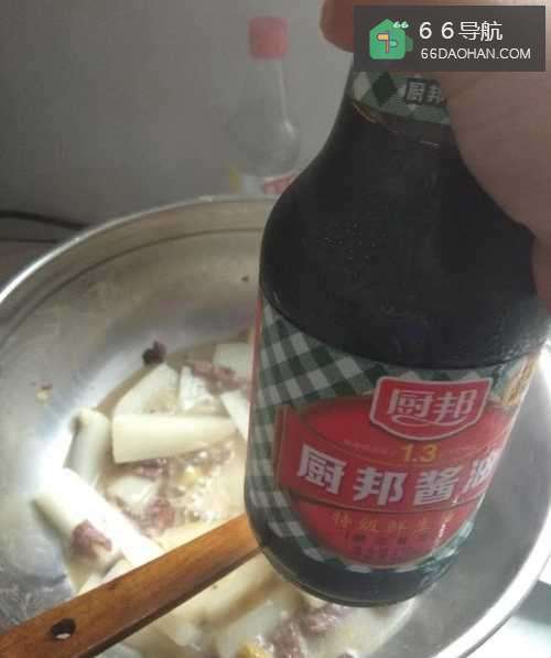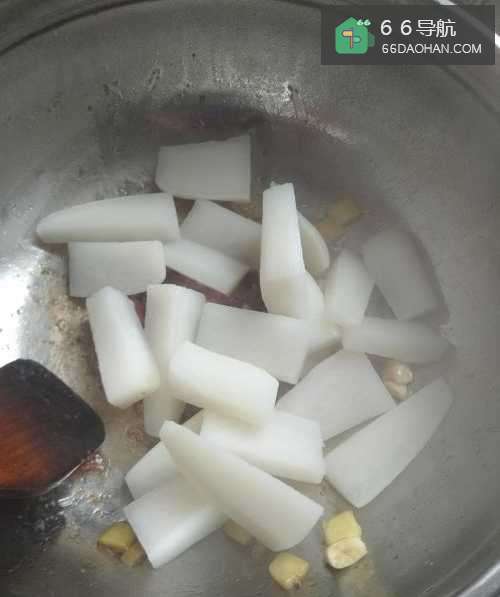 7以防干锅,倒入水,水跟萝卜平面就可以!