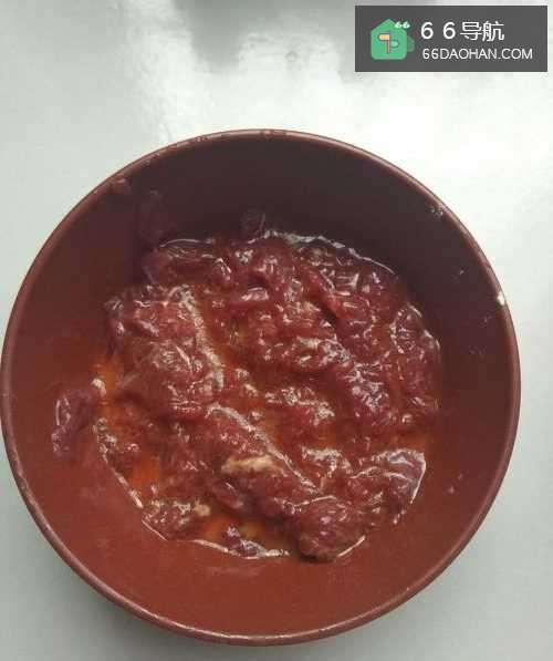 3牛肉洗干净,沥干水分,加速盐,生抽,生粉,油,搅拌均匀,腌制15分钟!
