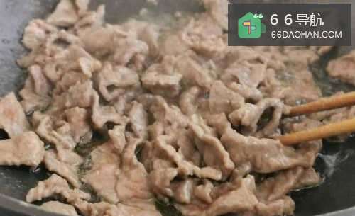 2接下来,加热油,加入牛肉片,炸至白色,即成。