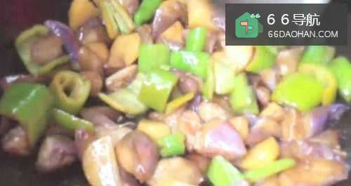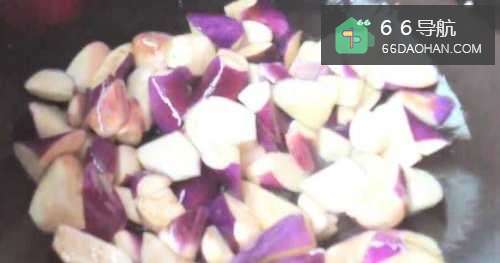7倒入土豆、茄子翻炒片刻,加盐、酱油炒匀出锅。