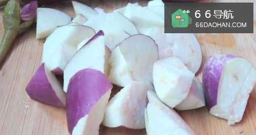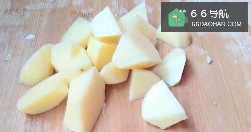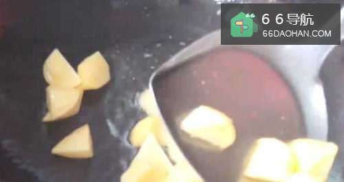 4锅中热油,放入土豆块炸至金黄捞出控油。