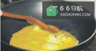 3锅内热油倒鸡蛋进去炒。