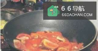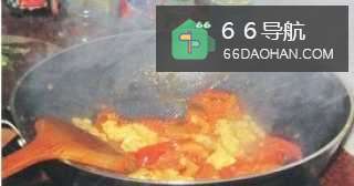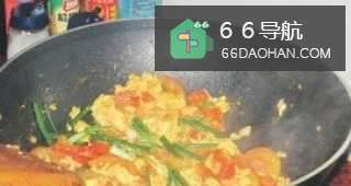9把鸡蛋跟番茄翻炒均匀。