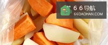 2将准备好的红薯土豆切块,放入保鲜袋中备用。