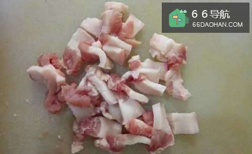 2取适量的五花肉,清洗干净,将五花肉切成小块、薄片,备用;