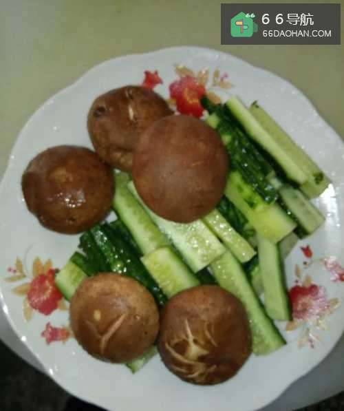 将青瓜削去部分的皮,清洗干净,切成小块;取45个香菇,清洗干净,切成片;