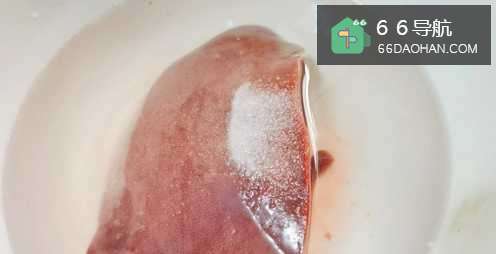 先把猪肝放在淡盐中浸泡五分钟后再切成片备用。