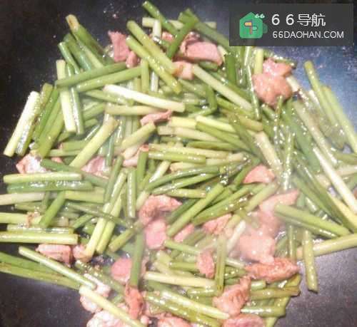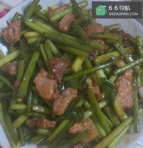 6美味的蒜心炒肉片就做好了!