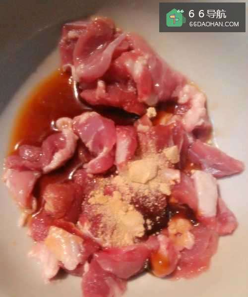 把酱油+耗油+鸡粉适当导入肉片中调和,备用。