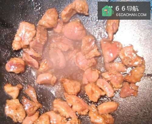 4洗净锅具,放入少量油,将肉片到入锅中翻炒。