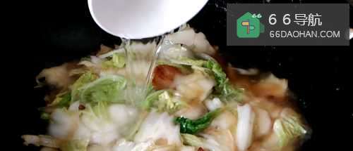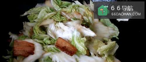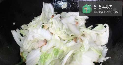 5然后放入白菜翻炒。
