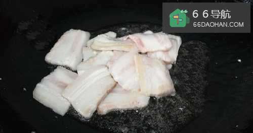 2如图锅中放少许油,放入肉煸炒出油。