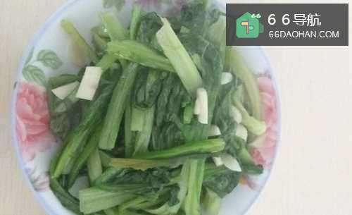 4待蒜头爆出香味,倒入油麦菜,翻炒均匀