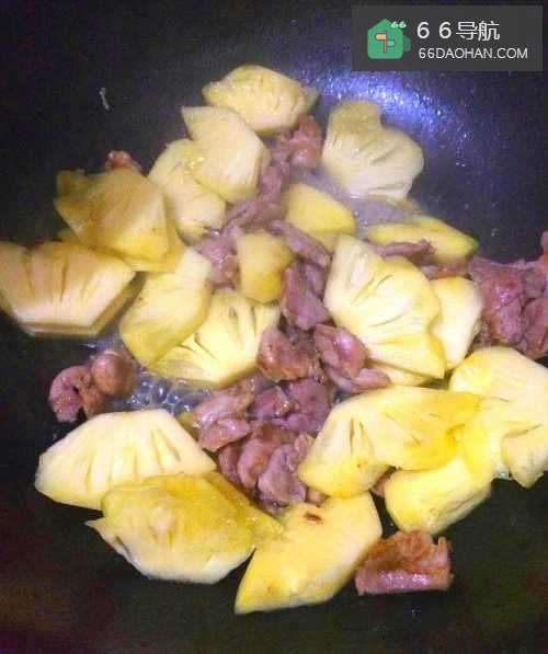 6翻炒发现菠萝有点变色的时候就要起锅了,加上白饭,满足感杠杠的。