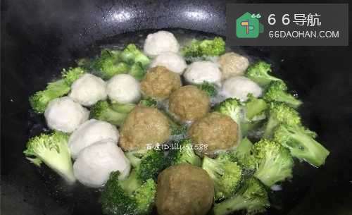4放入一大碗清水,将鱼丸和肉丸放入锅里和花菜一起煮3分钟。