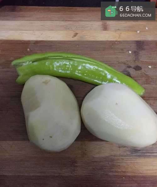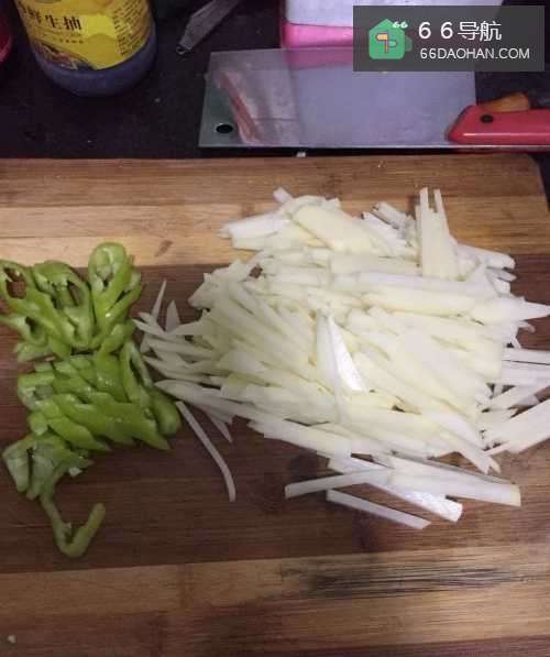 2土豆削皮切丝备用,青椒洗净切丝备用。