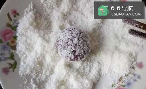 9蒸熟以后,趁热在椰蓉上滚一滚,沾满椰蓉即可。