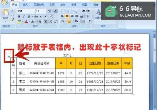 2、将鼠标放于表格中,表格左上角出现“+”字标志。