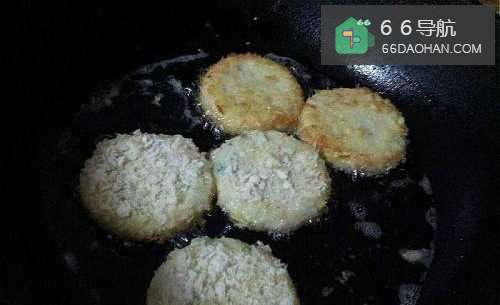 5先沾一层薄薄的面粉,再沾蛋液,然后压上面包粉。