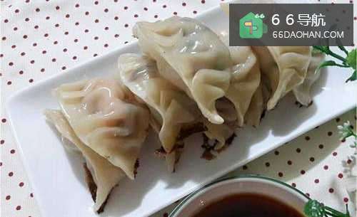 4饺子包好后,平底锅中加入一茶匙色拉油和一茶匙麻油烧热,把饺子放入先煎一分钟,再倒入半米杯的水,盖上锅盖,等水分蒸发,饺子底部煎到香脆即可,起锅时再淋一点麻油增添香味和光泽。