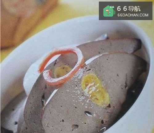 7持刀沿猪肝的横向,切成薄片,装入盘中即可食用。