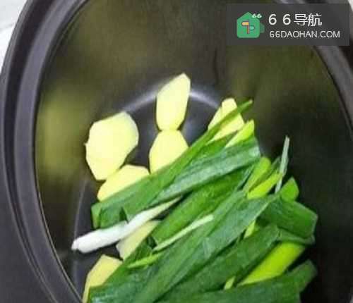 4然后将小葱、姜清洗干净,小葱切成段,姜切成片。
