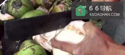 3椰汁喝完后,沿着椰子顶部(三只眼位置)用刀慢慢剁出一个盖状的,将蛋液灌进椰子内。