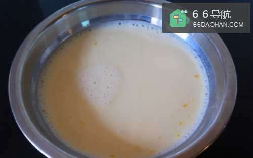 2将鸡蛋、牛奶、白糖搅拌均匀。